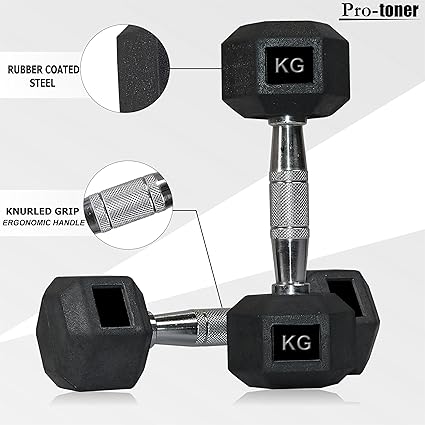Hexagonal dumbbells are one of the essential products for functional training and workouts in general. Dumbbells have durable rubber heads, which help reduce noise and prevent floor damage. The chromed steel handle has knurling for better grip. Their hexagonal shape makes them especially useful for wide variety of weighted exercises and movements.