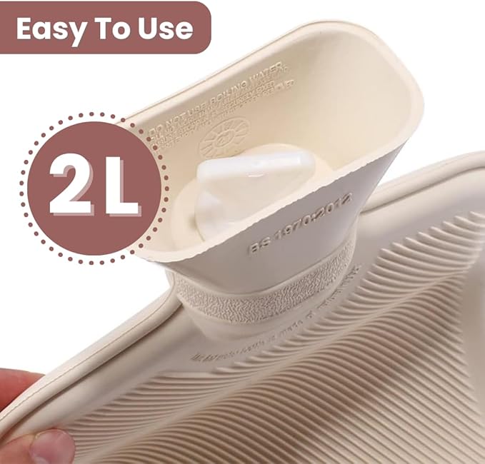 - SAFE, DURABLE & HIGH-QUALITY – BS1970:2012 British Safety Standard tested, this hot water bottle is made from high-quality, ribbed natural rubber with thermoplastic technology for a durable, leak-proof design. Always inspect before use for cracks, wear, or leaks and replace after two years to prevent material degradation. Check the manufacturing date inside the daisy-wheel or number format to ensure safe use.